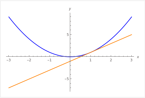 접선은 아래와 같이 함수의 그래프에 딱 달라붙은 직선을 의미합니다.